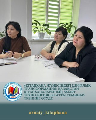 Қазақстан Республикасының Ұлттық кітапханасы ұйымдастыруымен «Кітапхана жүйесіндегі цифрлық трансформация: Қазақстан кітапханаларының Smart технологиясы» атты семинар-тренинг өтуде.
