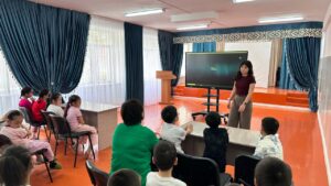 Мультфильм барысында кітапханашы балаларға тифлопікірі мен мультфилімнің тереңірек тарихын айтып, оқушыларды қызығушылықпен тыңдатып, мультфильм туралы өздерінің ой-пікірлерін білдіріп, кітапхана ұжымына алғыстарын білдірді.